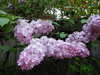 I'm not complaining. It's always beautiful, but usually opens after the lilacs are spent. This year, both of them are gloriously in bloom, almost as if they're trying to compete with each other.