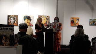 I hadn't been in one of these readings at that gallery since pre-pandemic times, so this felt like a kind of homecoming or even a family reunion, as so many friends were there--including the reader and our emcee in the photo above.