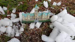 And if you're scratching your head over the photo posted above, the 'iceberg' is part of the many chunks I had to pull out when I defrosted our big freezer. As for the building resting in it, well, it seemed to be the closest thing I could find to a currently sinking ship.