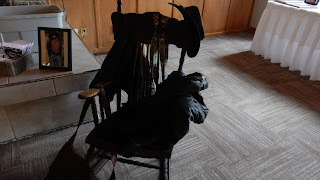 The photo above, though it's not easy to see, is one of the touching mementos his family set out at his recent memorial service. It's the chair where he often sat (and nearly always pontificated from), along with a favourite hat and vest, as well as his famous peacock-themed suspenders.