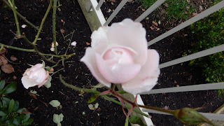 A walk in my neighbourhood often reveals something I haven't noticed before. This time, it was a yard with several rose bushes in bloom. I didn't want to barge onto a stranger's property, so I had to make do with a quick snap from just outside their fence.