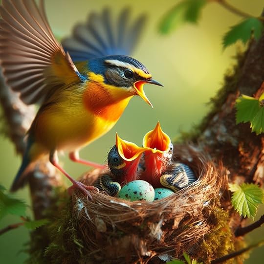 The proud parents chirping and singing with joy at fulfilling their life’s purpose which is to bring love into the world. You see, if you are in a place of suffering and struggle, remember, in every moment of every day throughout the entire earth, new life is coming into the world and bringing immeasurable love and joy and happiness.