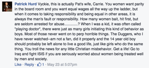 That’s what Carrie Hurd (under her pastor-husband’s Facebook profile) said to my Patheos colleague Vyckie Garrison: