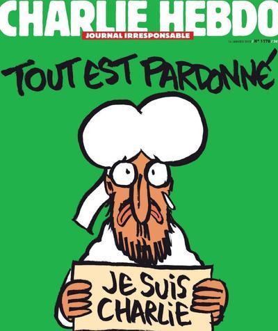 According to news reports, he avoided the same fate as his colleagues because he overslept and was late to work the day they were massacred. It’s fitting, then, that he illustrated the cover of the first issue following the attacks:
