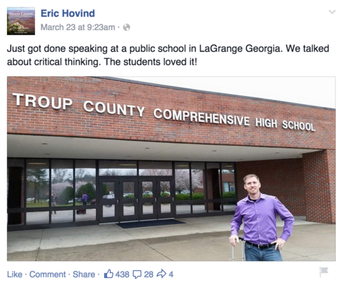 Creationist Eric Hovind Preached Creationism at a Georgia Public School This Week and We Have Proof