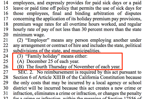 California Bill Offering Double Pay on a “Family Holiday” Inadvertently Promotes Christianity