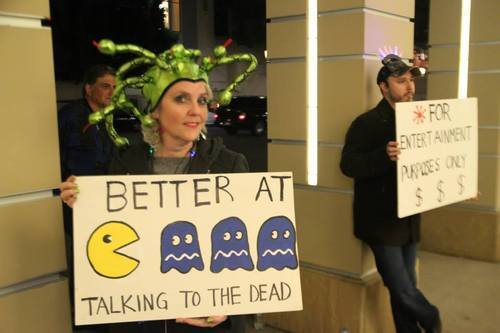 This is What a Protest Looks Like Outside a Psychic Demonstration