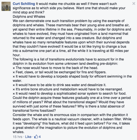 Curt Schilling Complains About How People Say He Doesn’t Get Evolution… Then Shows That He Doesn’t Get Evolution