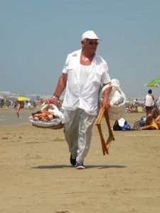 (A man in a white shirt arrives carrying a basket full of the very foods Lea has mentioned, and a slightly chilled bottle of the exact wine. He and Lea chat in rather formal Spanish without a glance at me, while he pulls an ingenious folding table from his basket, sets it up low in front of us, snaps a tablecloth in place, produces good glassware, real silverware, linen napkins, and then he lays out the food: freshly caught, freshly cooked. Very carefully, he pours us tastes of the wine. Lea likes it, nods. I nod too—it's crisp, cool and exactly what you want to drink on the beach. He fills our glasses. When he's done he retreats to an attentive spot behind us. We toast, we drink, we look out over the Bay of Cadiz and the great Atlantic Ocean. Somewhere down the beach there are a couple of young men playing guitars. At first, it sounds like traditional flamenco-inspired music, then Lady Gaga's "Poker Face." An older woman with pink-tinted hair and her small terrier trot by us. We are reminded that even in the oldest part of the old and formal world, the new and transient are never far away. The wine is nice, very, nicer with every sip.