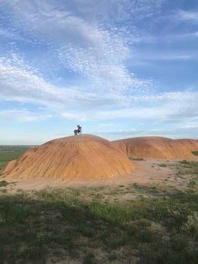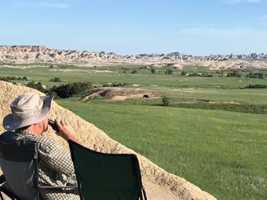 Dakota cocktail hour. Great birding. Prairie falcon, meadowlarks aplenty, bobolinks, prairie falcon, blue grosbeak….and Lonesome George in the background….