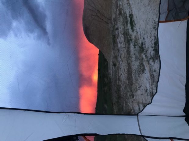 The view from Noah’s tent at sunrise that I can’t for the life of me seem to rotate clockwise (Bill?)….just tilt your head and you’ll get the idea….