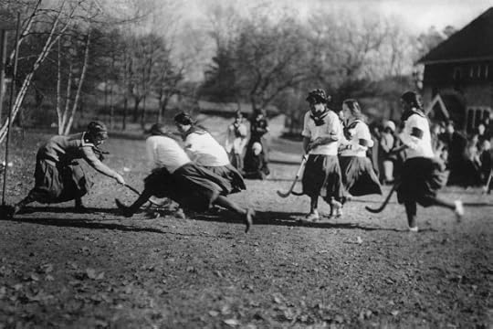 Elisabeth Congdon (third from left) playing Field Hockey, 1909 at Dana Hall