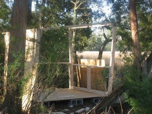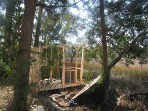 I’m out in the shack this morning, working on an essay about birds I have seen here. thought I would re-post this piece from the week I built this place: