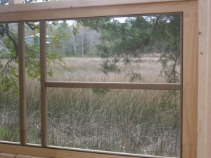 window I’m looking out right now, giving me a spectacular view of the marsh. (This website actually helped solve another problem: I wasn’t looking forward to building a crowned roof and then remembered the picture of John Hay’s slanted study roof {that I posted here.}) Pretty soon I was into it. “You’re good at getting immersed,” my wife said, which made me proud. It didn’t take long to see that the shack would be a special place for work, even though at that point the only work I’d done was with hammer and nails.