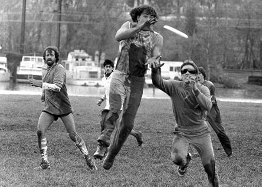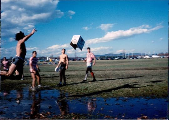 During my last year “off” I played with a team of older players, many of whom had children, on a team called Father Throws Best. Father had several ex-Rude Boys on the team, and at the end of one tournament in Amherst they indulged in an old Rude Boy tradition of diving after discs into a big mud puddle. One player would flip a disc into the air and another would come running up and lay out for it, “getting horizontal” as it was known in the sport, then splashing down and sliding in the puddle. I refused to play along; it was a Rude Boy thing after all, and I, in my heart, was still a Hostage. But then a bunch of them grabbed me by the arms and tried to drag me over to the puddle. I told them to let me go, that I’d do it, only I’d do it my way.