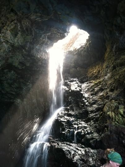 Bottom of a 1200 foot waterfall ending in a sea cave, wow.