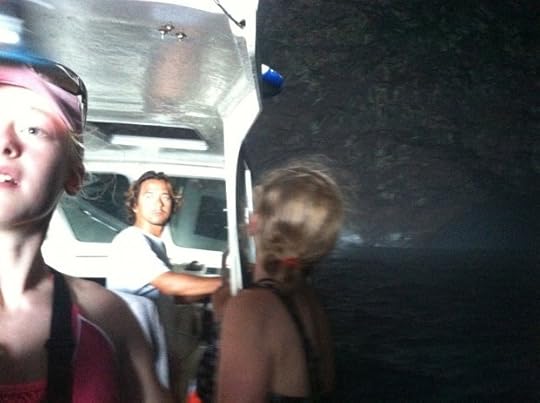 Our fearless captain, Sam, with game face, backing out. Elysia left, Juliet right.