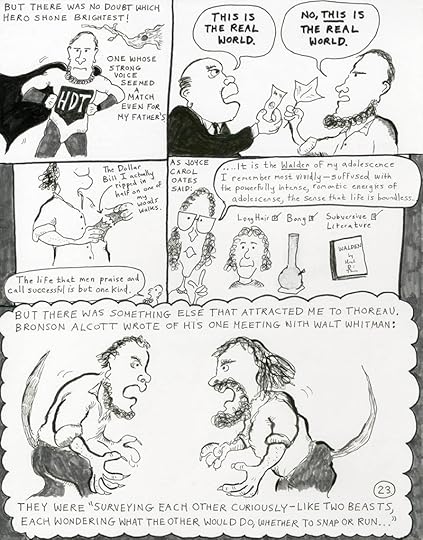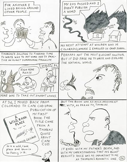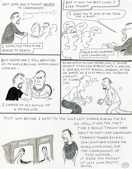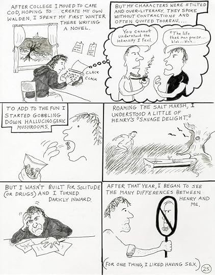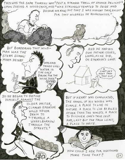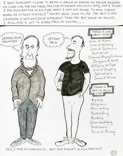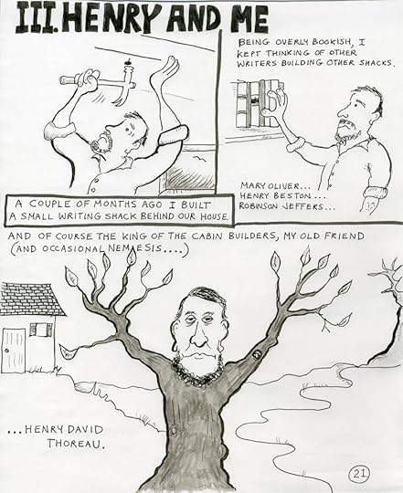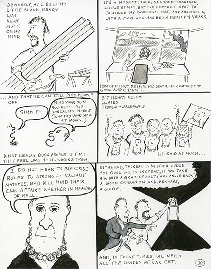 We have been getting a lot more eyes on these pages lately, which seems a perfect excuse to recycle something old as if it's new (which Thoreau, the thrifty bugger, would have approved of). Anyway here, in a slightly different format, is my cartoon take on my complex relationship with Henry David…….