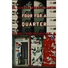 Recently I got a postcard from Michael Martone announcing his newest book, Four for a Quarter. Beneath several vintage-looking photo strips, the postcard and book cover show an old photo booth tucked into a tattered post-no-bills wall somewhere in post-industrial America. The booth sports a sign that says PHOTOS, of course, but it took a little staring to notice that the designer (Lou Robinson) has inserted the word FICTIONS in a font so much the same size as PHOTOS that at first (and then for several weeks) I didn't notice it. It's as if the booth sold PHOTOS FICTIONS. But the fictions referred to are Mr. Martone's. The book is nicely made, beautifully printed and presented, kudos to the The University of Alabama Press (and a notation that much of the great literary work being produced these days is being picked up by university and other small presses).