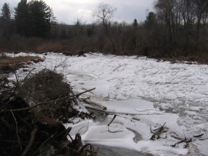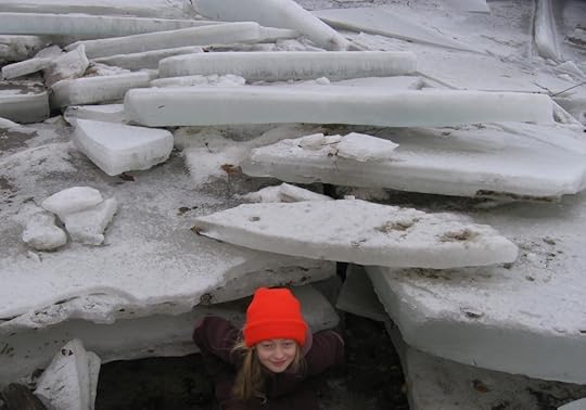 Happy New Year! Elysia and I were out till all hours dancing with twenty or thirty kids who are all suddenly huge and take up a lot more room on the dance floor than in years past. There were parents involved, too (Elysia says, Uh, Dad, there were parents going nuts on the dance floor!), and great costumes. We slept this morning till all hours, too! Juliet is in NYC to look after her dad and see the Dark Star New Year's Eve show. 2012 sounds like the future to me, who wrote 1998 on a check a few weeks ago. After a breakfast of chocolate-chip pancakes, Elysia and I ventured out wrapped for cold weather, but found it mild. The stream was frozen last week, but a warm rain Wednesday washed straight off the frozen earth of mountain and valley—zero absorption–and broke the stream ice out, lovely plates and planes of ice to explore. It all refroze, last few days, but today a little overflow will leave clean pools to freeze, and we're hoping for some ice skating before the next snow. Then again, we're hoping for some serious snow. We should be skiing to the stream by now, and skiing on the stream, and just skiing in general! Some photos below, with a camera I dropped in a puddle, a little creaky and foggy, apologies, dead flash. Note the spot, fifth photo below, where the first Bad Advice Live was filmed last summer! Hard to imagine a gentle swim right now, but it will soon be that time again. And then this time, then that, then this, then that, unto always….