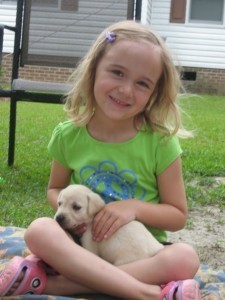 The omens were not good. At the kennel my daughter Hadley, then six, sat on a couch with all the new pups from Link and Ali's litter, and she naturally chose the little affectionate one who crawled right up into her lap and licked her face. Later several people–more crones from Macbeth–would warn us too late that you "never pick the friendliest one". Then there was the matter of her name. When Hadley was little I helped her get to sleep with a series of stories that we called "Dad's Used-to-Be Dogs." The premise was that all the dogs that I had had through childhood would get together, via time machine of course, and head out on adventures. Hadley loved all my childhood dogs, from the Lassie-like collie, Macker, to the scrappy mutt Hound, but she was particularly fascinated by our wild black lab Missy. This earlier Missy could jump over the eight foot fence in our backyard, and belonged, if not on a farm then on a racetrack. One day my mother mistakenly slammed her tail in the sunroom screen door, and Missy flew around the house, spraying blood everywhere. The tail never healed right and hardened to bone, becoming a cudgel-like weapon that she constantly waved, smashing lamps and vases. Missy the First was never tamed, let alone trained, and Hadley loved to hear the stories of her smashing things.