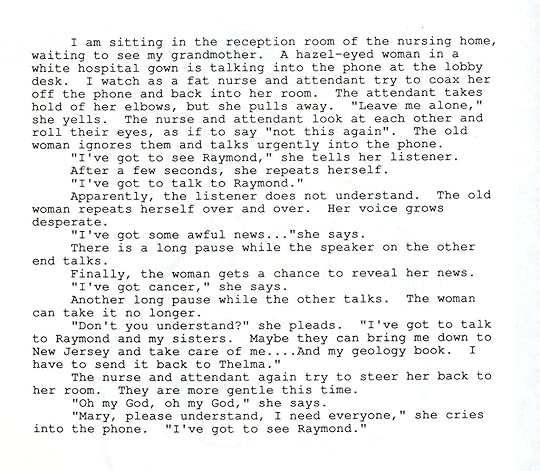 Or when the newer writer says, "I really don't harbor any ill will, it's just a story that must be told." I hear, "I want revenge—this person I propose to write about has won in some way, beaten me out in the game of life, and deep inside I know I'm being petty (or worse) and that makes me even madder, so needing a victim who isn't me, I need your teacherly permission to build me a little predator drone and blast a couple of black jeeps off the sands of the desert of my emotional life."