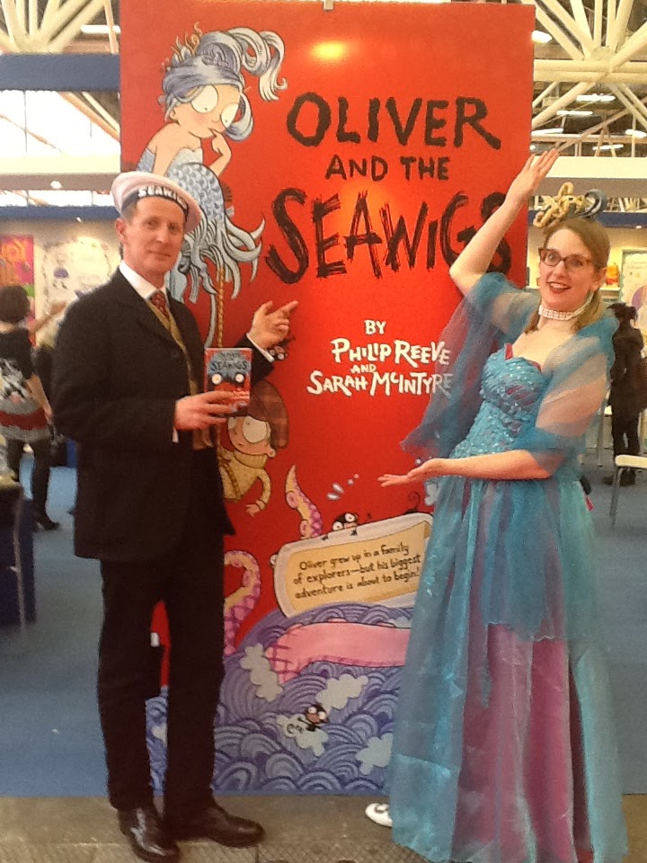 Philip Reeve, Sarah McIntyre and the Seawigs at OUP's standMy last post began with a picture of Sarah McIntyre and this one opens with the lady herself in all her pantomime glory! She and Philip Reeve attracted a lot of attention in the costumes they donned to promote Oliver and the Seawigs, a quartet of books initially inspired but soon elaborated from the CWIG group of the Society of Authors (which actually stands for Children's Writers and Illustrators Group). A happy conjunction all round for OUP.