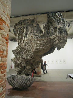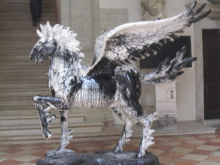 In the Palazzo Pisani, outside the main exhibition, the wings were on a horse by Simon Ma, the second most famous Chinese artist featured in the Biennale. His exhibition, called Ink - Brush - Heart, featured forms based on water drops.