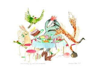 Rebecca Cobb's illustration for Hare's BirthdayDo you remember the RSPCA's Wild About Britain competition that I wrote about here a few weeks ago?The three winners were ‘The Chase’ by Ayasha Kawakita, 14, from Hailsham in East Sussex in the 12 to 16 category and ‘A New Neighbour’ by Charlotte Pearce, 11, from St Ives in Cambridgeshire was the winner of the 11 and under group.