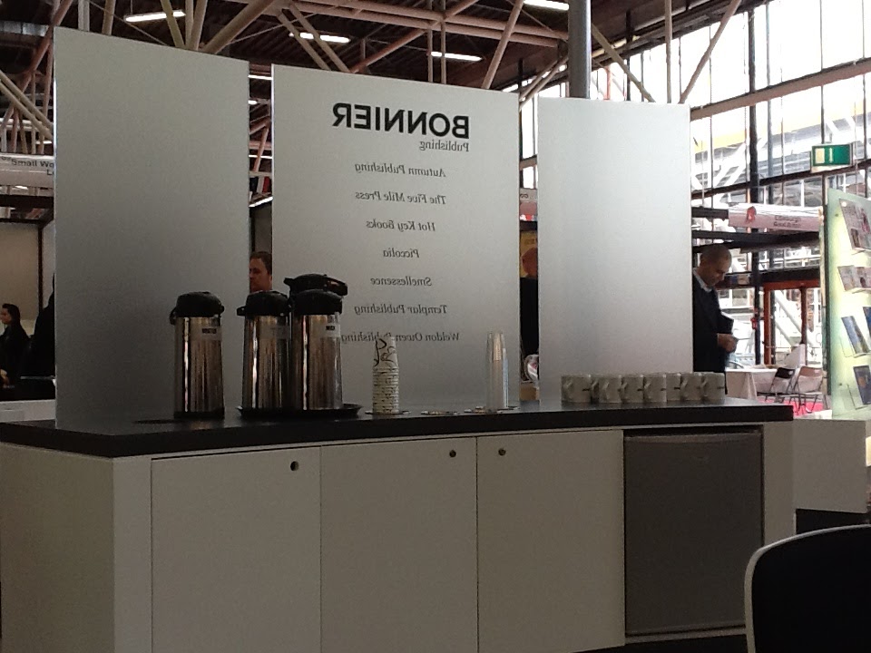 I penetrated the massive new Bonnier stand to see Helen Boyle, Commissioning Editor for Templar. It was quite a contrast to their last year's stand. They even had their own coasters! And a sofa to wait on. "Actually there's a kitchen behind that door," Helen told me.