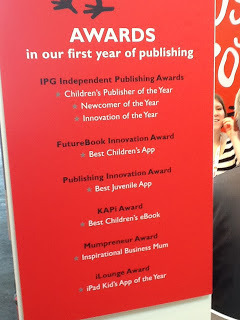Last day at the Fair and a nice chat with Kate Wilson, above. Nosy Crow has done so very well in three years. I took another picture of its list of awards and they were almost too many to fit in. They were IPG Publisher of the Year last year.