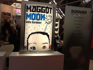I had seen someone carrying a proof copy of Maggot Moon, Sally Gardner's first book for Hot Key, and craved one. Ruth promised to send me one and gave me a promotional bag in consolation; she needed all her proofs for publishers rather than mavens. And there seems to be an auction building for it in Germany.