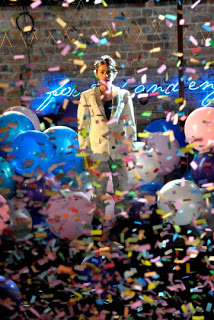 Blanche, King John's niece by one of his sisters (another Eleanor) is married off to Louis, the Dauphin of France. And thus the king deflects the French king's support for Arthur's claim to the throne. The wedding of Blanche and Louis is given a full-blown "Hold it, Flash-Bang Wallop, What a Picture!" treatment, with balloons, cowboy hats, stripping, partyhats - the works. Blanche herself (Natalie Klamar) was played very much as Portia and Nerissa were in the "Las Vegas" production of The Merchant of Venice, as a peroxide blonde bimbo in a sticky-out Barbie dress.