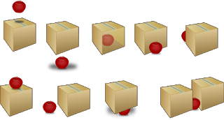 This illustration, from Wikipedia Commons, depicts a ball which is, from Right to Left: above, below, inside, outside, behind, on, beside, under and between a box or boxes. So far, so straightforward but it's harder to depicts some of those pesky little words like "to" and "from," which are a bit more abstract.