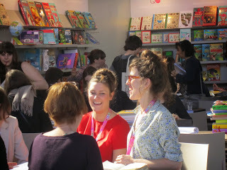 They are all very entertaining and by the time they have finished it is time to drink more Prosecco, this time at the Barrington Stoke stand, which is so conveniently on a corner that all sorts of people drop by. Indeed Eoin Colfer himself arrives, after downing some whiskey at the simultaneous party on the Irish stand.
