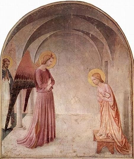 Here is another version of the Annunciation from one of the cells and you can see that the Saint has "fresco-bombed" the subject.