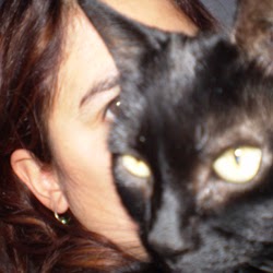 One of the many qualifications Rhiannon has for performing magic, as well as her name, is the possession of an all black cat. Here they both are, above. So it will be no surprise that the Little Witches of her first e-book also acquire a familiar of this traditional form. Only in his case he is sometimes a boy.