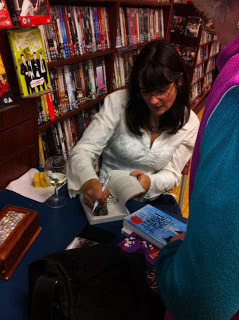 Sally Nicholls signing copies at the launch of Close Your Pretty Eyes