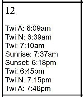 Using the calculator at the site https://www.sunrisesunset.com/, I generated the following times for sunrise and the various forms of twilight on 12 February at Lincoln’s birthplace.