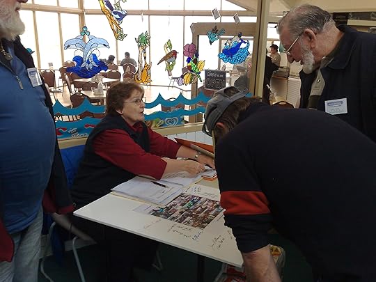 Father and Son: former whaling station workers Andy and Ray Woonings being interviewed by Radio West At WhaleWorld.