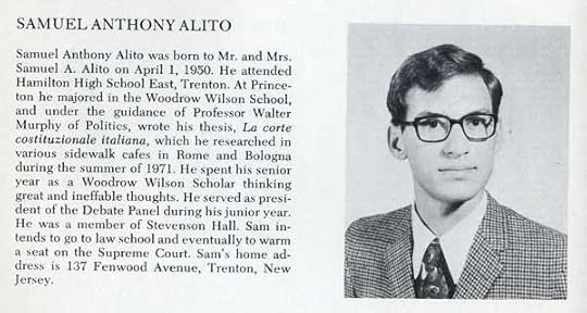 The first thread is that Justice Barrett did not aspire to be a judge before becoming a lawyer. Barrett's father was an attorney. But the Justice said in a recent press appearance that she wanted to be a teacher, like her mother. By contrast, some of Barrett's colleagues had their sights on the bench at a young age. In her high school yearbook, Elena Kagan wore a robe and held a gavel, and included a Felix Frankfurter quote. Samuel Alito's Princeton Yearbook said, "Sam intends to go to law school and eventually to warm a seat on the Supreme Court." Justice Jackson said that Judge Constance Baker Motley (with whom she shares a birthday) was a "North Star for me in my career." I don't get the impression that a young Amy Coney aspired for the bar or the bench, in the ways that some of her colleagues did.