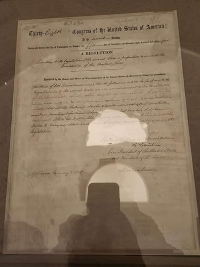 The Thirteenth Amendment was written in very tight cursive, and took up barely half the page. It is noteworthy that President Lincoln signed the Thirteenth Amendment, even though Article V does not provide a role for the President in the amendment process.