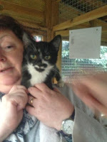 Today is the third anniversary of the day that Ruby came to live with us. She was a little 8 week old stray, being looked after by a wonderful lady from the Cats' Protection League but the minute I walked up the drive and towards the pens where she was staying she threw herself at the netting and demanded - loudly to be taken home As we had recently lost out beautiful Maine Coon Flora, we had a large cat shaped hole in our lives and Ruby has helped to fill that - in spite of being about one third the size of Flora.She was barely a quarter of the size of Charlie when she arrived, but she made sure he understood that she was the Queen around here.
