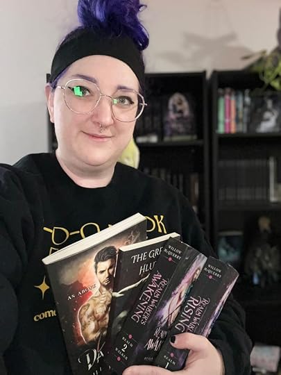 With a few of her books….I can’t even begin to say how much I love this human. She’s compassionate, brilliant, breaking down stigmas and biases and waving her one-finger flag at the negativity surrounding mental illness, and I am here for it. I can’t wait to read what’s next for her, and if you haven’t checked her books out, I will post all her socials below. My only ask is, please read all trigger warnings in the author’s notes. These are dark romance books and not for everybody.