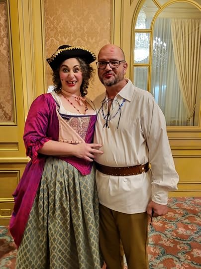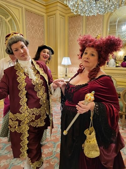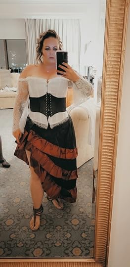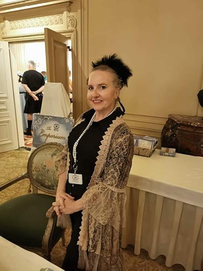 Well, we are back for Part Two of my trip to San Diego and HRR. This will be about the retreat itself and what I specifically got up to during my time. There were events I missed and ones I didn’t have a costume too so I won’t have pictures of all of it. Starting with the first full day which was Wednesday, We signed in and were given our name cards, a swag bag full of goodies, a beautiful charm bracelet which I’ll get to in a second and the emporium was open for anyone looking to buy antique period pieces, They had everything from jewelry to corsets, to hats, gloves, crowns, and merchandise. (I may have bought a crown because I needed it lol). That night we gathered on the terrace for light snacks and drinks for an informal meet and greet. I felt seriously underdressed and was floored by the beautiful costumes already being worn. We made some friends, mingled, and then headed to bed.