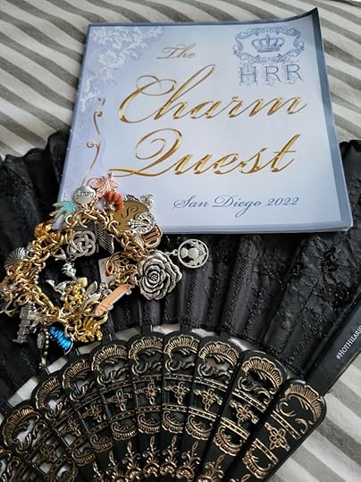 We received the beautiful charm bracelet and a booklet we used to go on a hunt and match up each charm with the author that provided it. Once we matched them up we had the author sign each spot and at the end of the retreat you handed in your booklet to be entered into a draw for tickets to HRR 2023 and a beautiful crown.