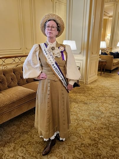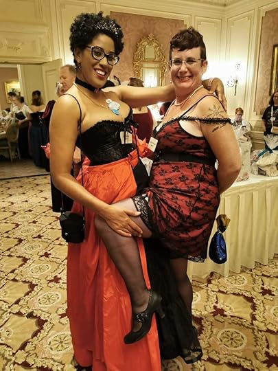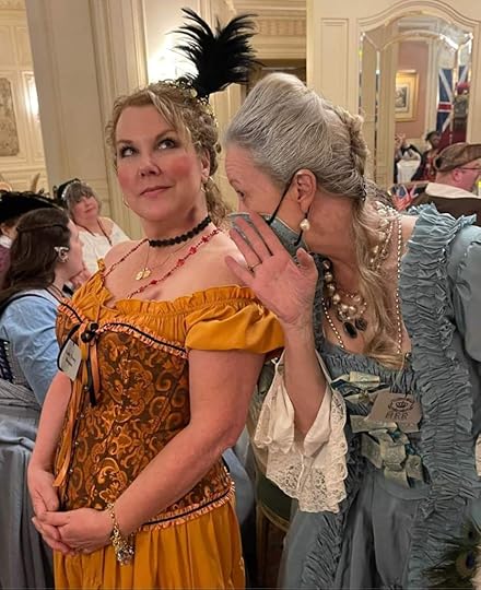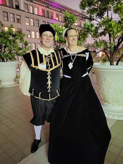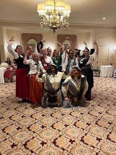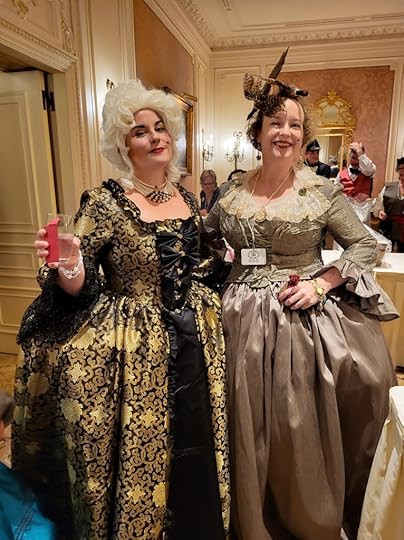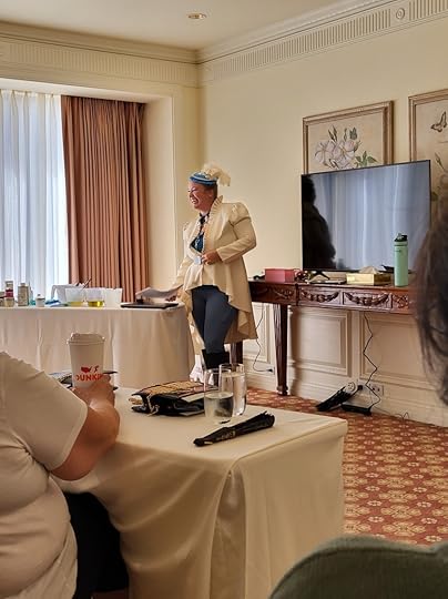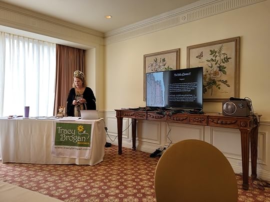 Friday was another full day full of events I went to a morning class hosted by Tracy Brogan (who I might add is another amazing human) and took her class Taking the Fifth where I learned the history of James V of Scotland. His history was so sordid and intriguing I enjoyed it so much I was disappointed when it ended. I snagged a copy of her book before I left. We took off for a quick lunch before heading back to the afternoon classes. Monica took Hairstyles from Ancient Rome to the Victorian era hosted by Gina Danna and I took Lye Back and think of England hosted by the hilarious Caroline Lee where I learned the historical methods in which humans cleaned their bits.