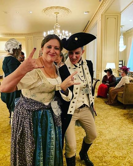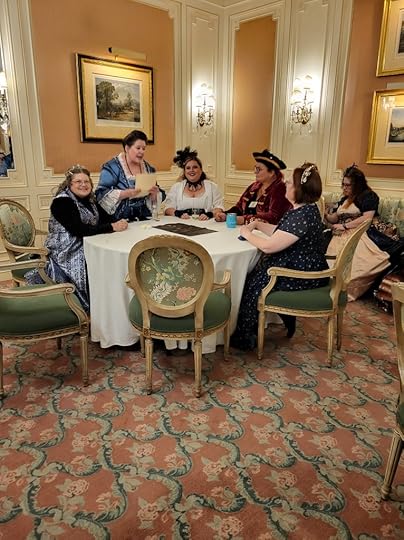 Thursday morning The Regency Fair took place with games and prizes, we did go in and check it out quickly, however we headed out on an adventure you’ll hear about in Part 3 before heading back for class. During the day on both Thursday and Friday, they hosted classes on a variety of fun topics. Monica and I divided and conquered each going to different classes and sharing what we learned. I attended the Path to Publishing class hosted by Kathryn LeVeque, the owner of Dragonblade Publishing. Although it wasn’t my subgenre of romance I did walk away with a better knowledge of which publishing route I wanted to go on, which up until that point I had been weighing different options and learned a few new things as well. Afternoon tea was served between 4-5pm, I did not attend this part as I was starving and we headed out to eat before coming back and getting ready for the evening’s festivities.