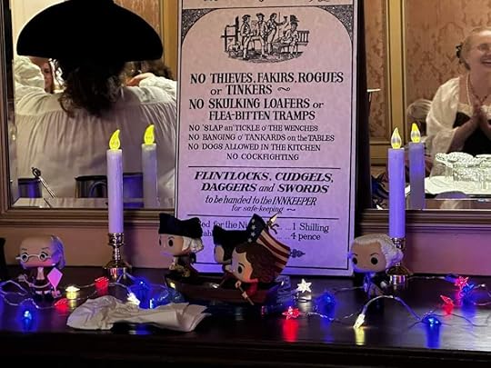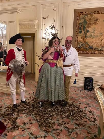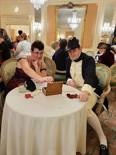 When you arrived at the event you were given a bag of old coins to use for the gambling games and also to trade in for tickets to enter draws of baskets donated by various authors in attendance. They served drinks made from recipes TJ London acquired from an old American president. I don’t remember which one sorry but they were tasty and strong as hell. I can say I was robbed of all my coins by a thief in our midst, had to acquire more coins, and had a roaring good time.