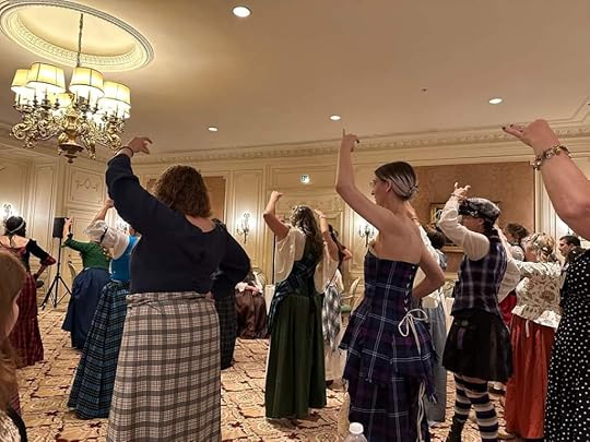 Friday afternoon there was an Historical Pool party (that I missed oops) and Friday night was the Highland Ceilidh where Monica taught the highland fling, everyone dressed in their tartans and frocks, and music was provided by an amazing live band. I didn’t have a costume for this event but I did get some good pictures of my fearless friend teaching us to dance and a couple of ladies who stole the show in their amazing costumes and the crude humor that followed.